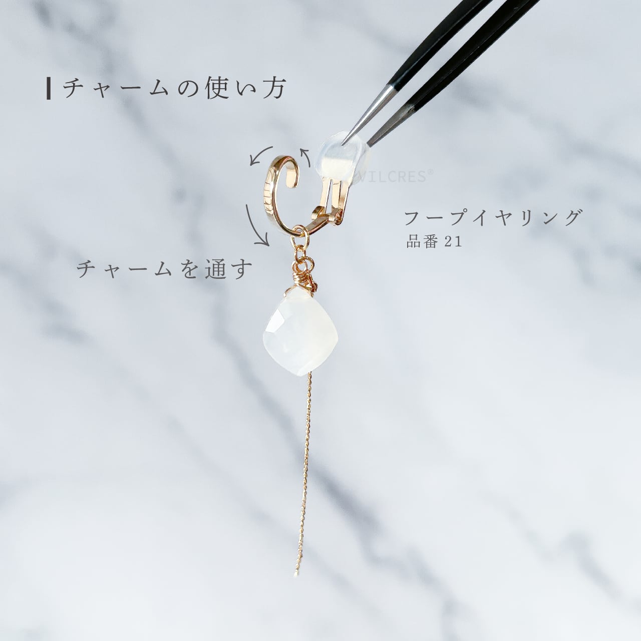 このチャームは、VILCRES®で販売しているピアス・イヤリングに通してお使いいただけます。