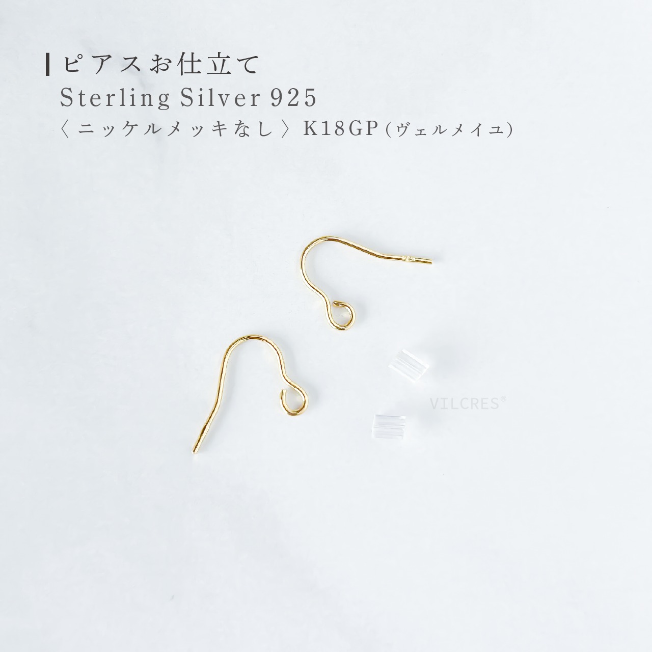 スターリングシルバー925に、K10以上(VILCRES®ではK18)の金を2.5ミクロン以上コーティングした高品質なジュエリーです。