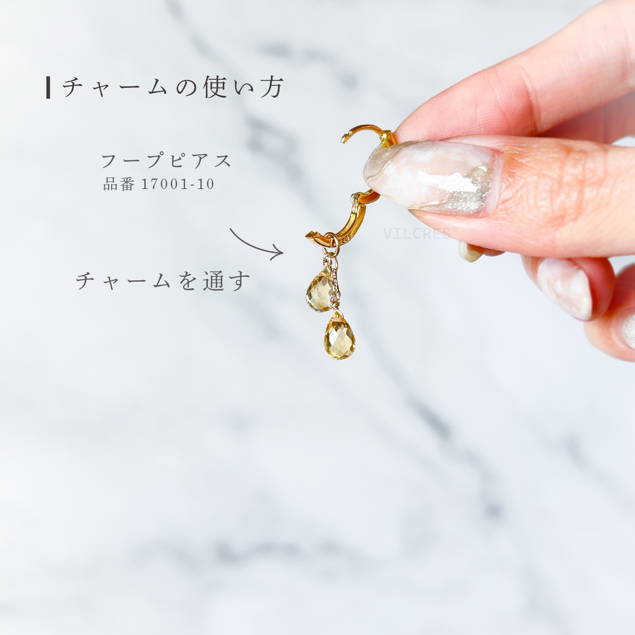 このチャームは、VILCRES®で販売しているピアス・イヤリングに通してお使いいただけます。